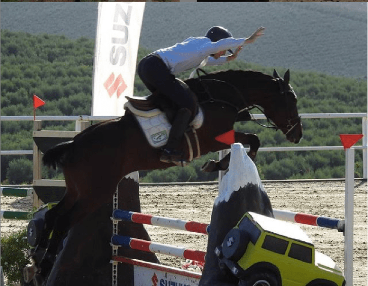 Ángel admite que él se dedica a los espectáculos ecuestres y que, por ende, no tenía tiempo suficiente para concursar a “Brinca” en saltos. Pero, se sincera y añade algo más: “yo puedo concursarle a 1,20m ó 1,30m. De hecho, ahora iré a un concurso en Utrera. Pero el caballo puede y se merece saltar más. Sería egoísta por mi parte tener que bajarle para que pudiese montarlo yo. Yo no tengo la experiencia para saltar tan alto y, el caballo, como ha empezado tarde a competir, no tiene tiempo para dármela.”